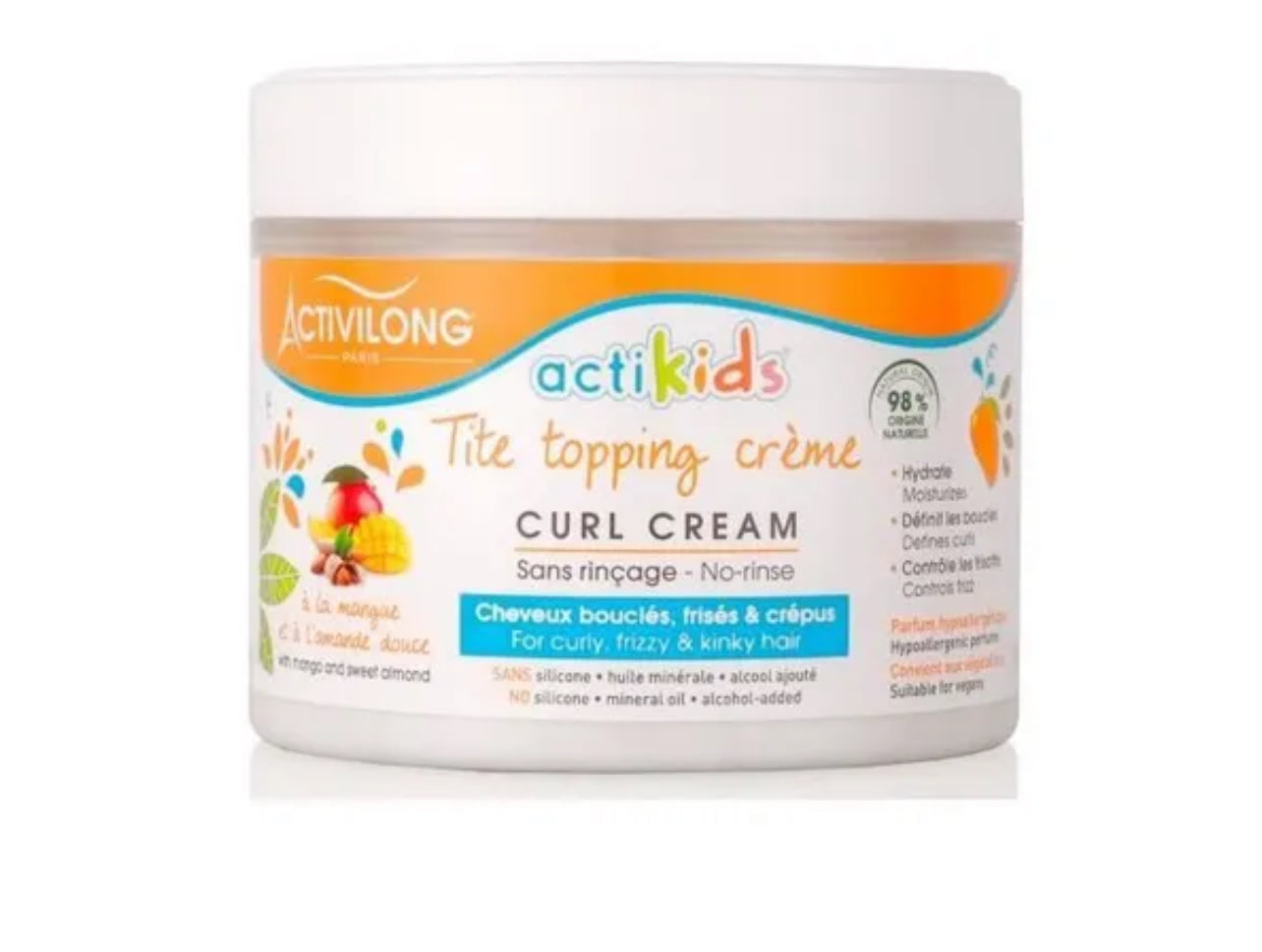 Avec la crème boucles de la gamme ActiKids, plus besoin de choisir entre l'utile et l'agréable pour les cheveux bouclés de vos enfants. Cette crème assure à la fois nutrition et hydratation des boucles, ainsi qu'une définition impeccable.