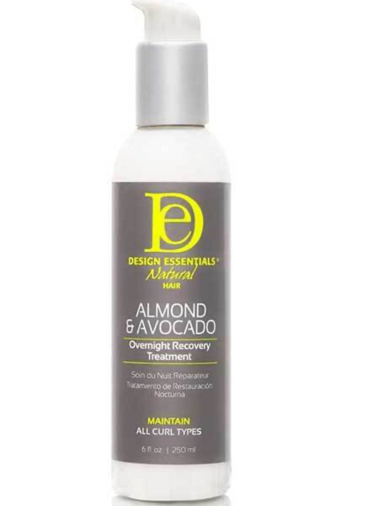 Soin Réparateur de Nuit Amande et Avocat : des cheveux sains au réveil. Notre soin réparateur de nuit Design Essentials réhydrate et nourrit vos cheveux pendant votre sommeil.