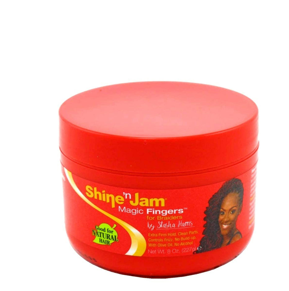 Gel AmPro Shine-n-Jam Magic Fingers pour tresses - Offre une tenue ferme et une brillance non grasse - Renforce les cheveux grâce aux protéines de soie - Agit sur toutes les textures de cheveux pour créer de multiples styles - 227 g